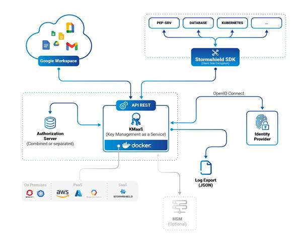 Stormshield KMaaS is the backend component of this ecosystem and acts as a Policy Decision Point as defined in the Zero Trust architecture, securing and authorizing access to confidential data.