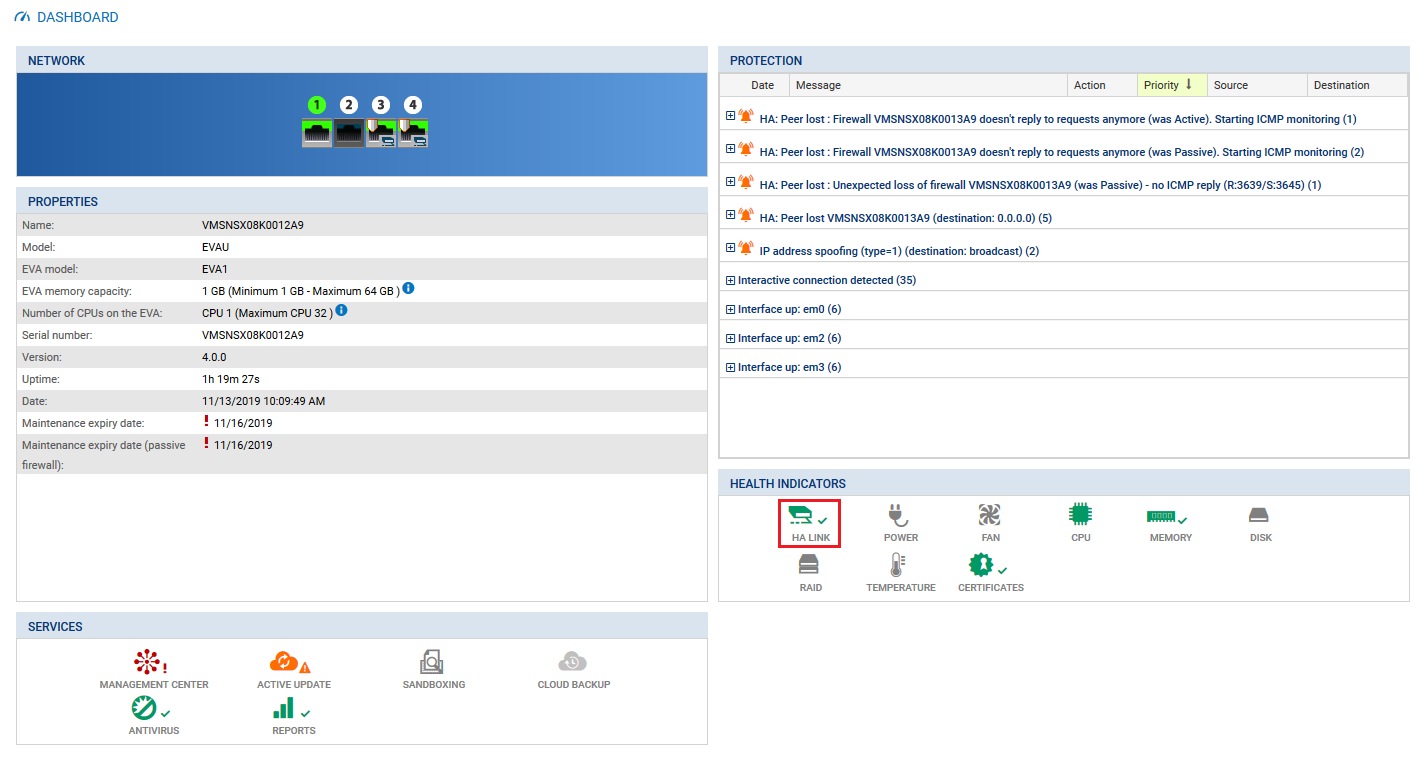 After you have applied the new network configuration, the firewall that joined the cluster will restart. - Once this step is over, you can connect the interfaces other than those dedicated to HA.