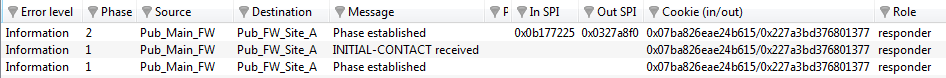 - No message appears in the module Logs > VPN in Stormshield Network Real-Time Monitor on the “initiator” Firewall.