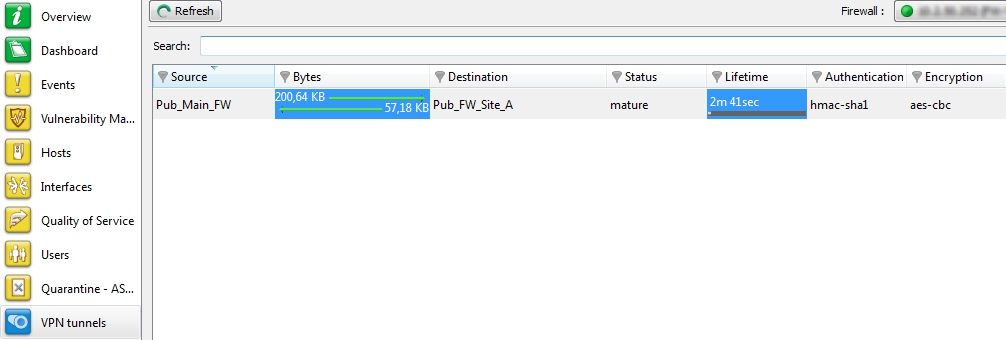 In the VPN Tunnels module, you can also view the tunnel as well as the amount of data exchanged: