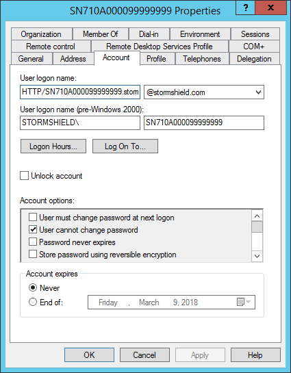 FILE=<file>- SPN is the name of the main service in the SPNEGO configuration (e.g., HTTP/SN710A000099999999.stormshield.com).