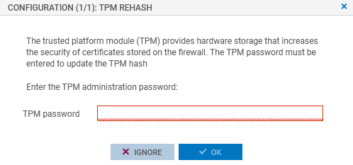 A window automatically appears when the TPM needs to be sealed. In a high availability configuration, a window also appears if the TPM on the passive firewall needs to be sealed. If both members of the cluster are concerned, two windows will appear one after the other.