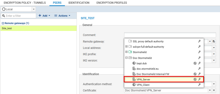 - Go to Configuration > VPN > IPsec VPN > Peers tab.