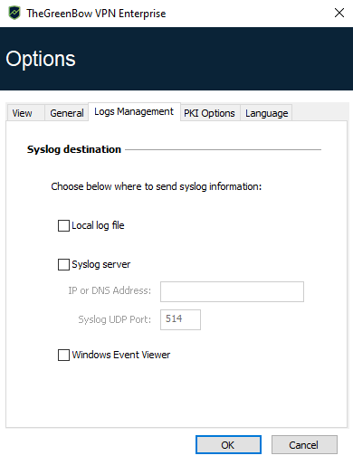 - Les fichiers de logs sont générés chaque jour et conservés 10 jours par défaut. Au-delà de cette période, le logiciel purge automatiquement les fichiers plus anciens. La durée de conservation des logs peut être configurée à l’aide de la propriété VPNLOGPURGE de l’installeur du Client VPN (voir « Guide de déploiement »).