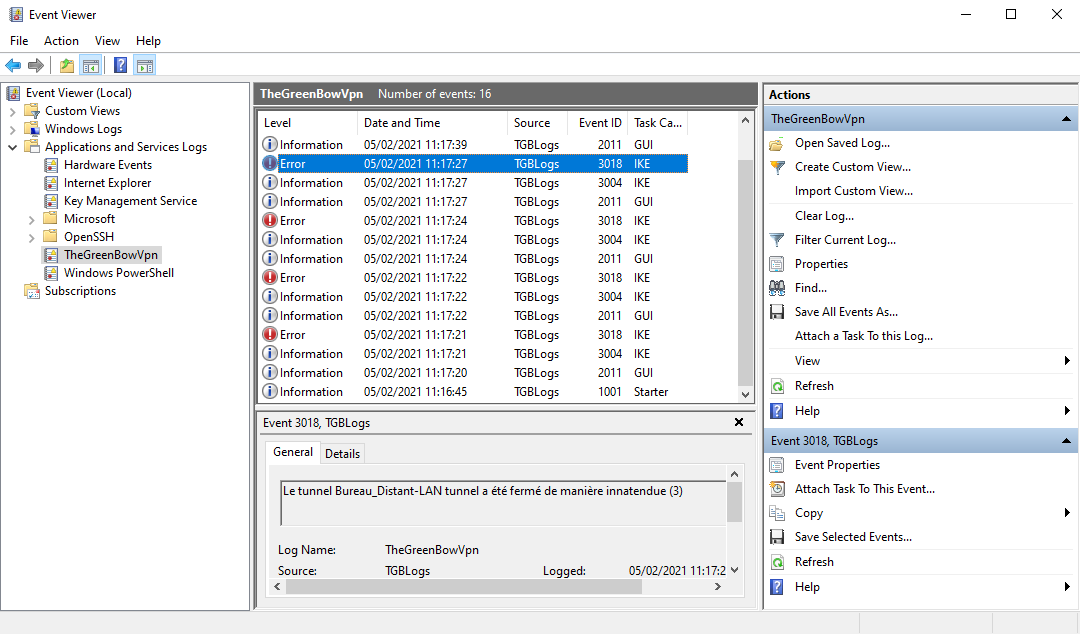SN VPN Client Exclusive permet de collecter des logs de type administrateur : ouverture de tunnel, certificat expiré, durée de connexion, login/mot de passe erroné, modification de la configuration VPN, import ou export de cette configuration, etc. Les logs administrateur offrent en particulier un premier niveau d’analyse sur les problèmes rencontrés.