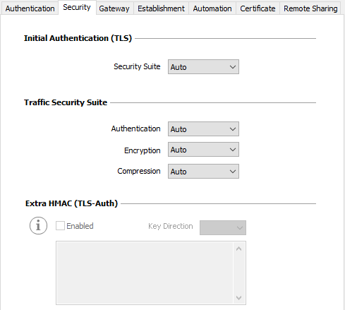 Auto signifie que le Client VPN s’adapte automatiquement aux paramètres de la passerelle.
