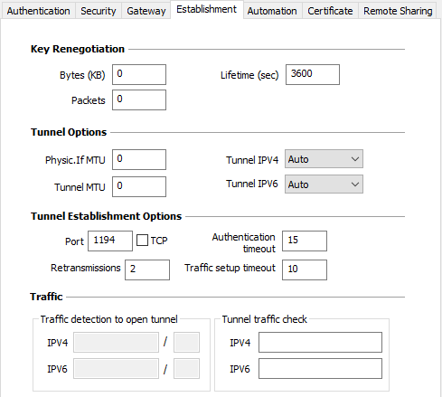 Délai d’établissement de la phase d’authentification au bout duquel on considère que le tunnel ne s’ouvrira pas. À échéance de ce timeout, le tunnel est fermé. |