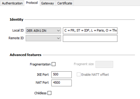Le « Local ID » est l’identifiant de la phase d’authentification que le Client VPN envoie à la passerelle VPN distante. Suivant le type sélectionné, cet identifiant peut être :