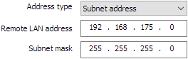 L’extrémité du tunnel peut être un réseau ou un poste distant. Voir la section Configuration du type d’adresse ci-dessous. |