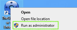 Pour lancer le Client VPN en mode administrateur, afin de pouvoir accéder au Panneau de Configuration, cliquez sur l’icône SN VPN Client Exclusive avec le bouton droit de la souris, puis sélectionnez l’option de menu Exécuter en tant qu’administrateur.