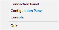 une icône en barre des tâches et son menu associé, différente pour le Panneau TrustedConnect et pour le Panneau des Connexions / de Configuration.