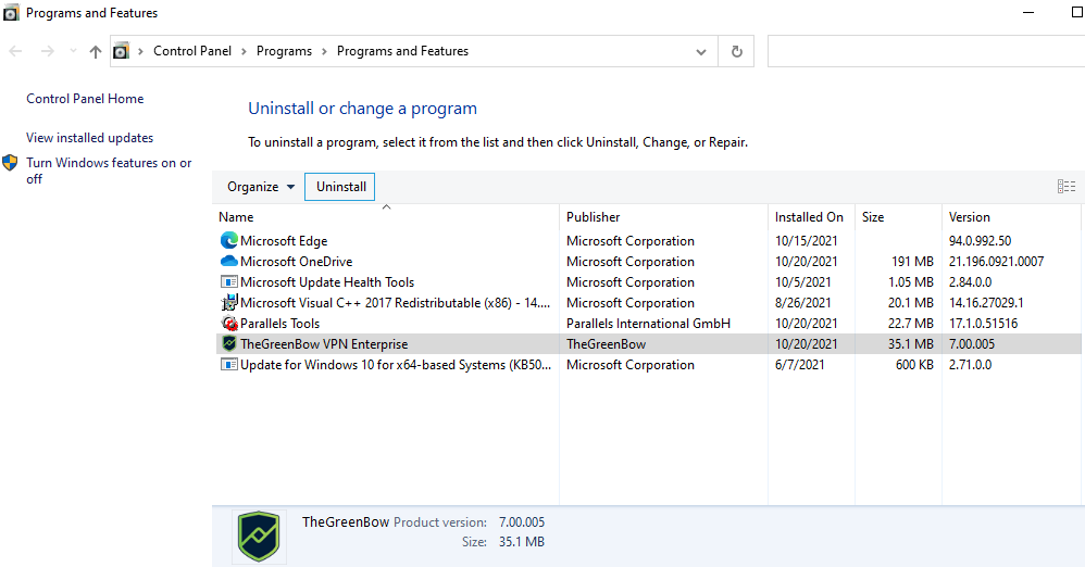 Cliquez avec le bouton droit de la souris sur le programme SN VPN Client Exclusive, puis sélectionnez Désinstaller.