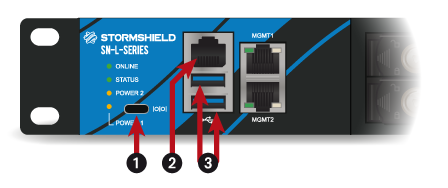 As the serial ports (1) and (2) allow access to the SNS firewall in console mode, users can connect to it from a PC.