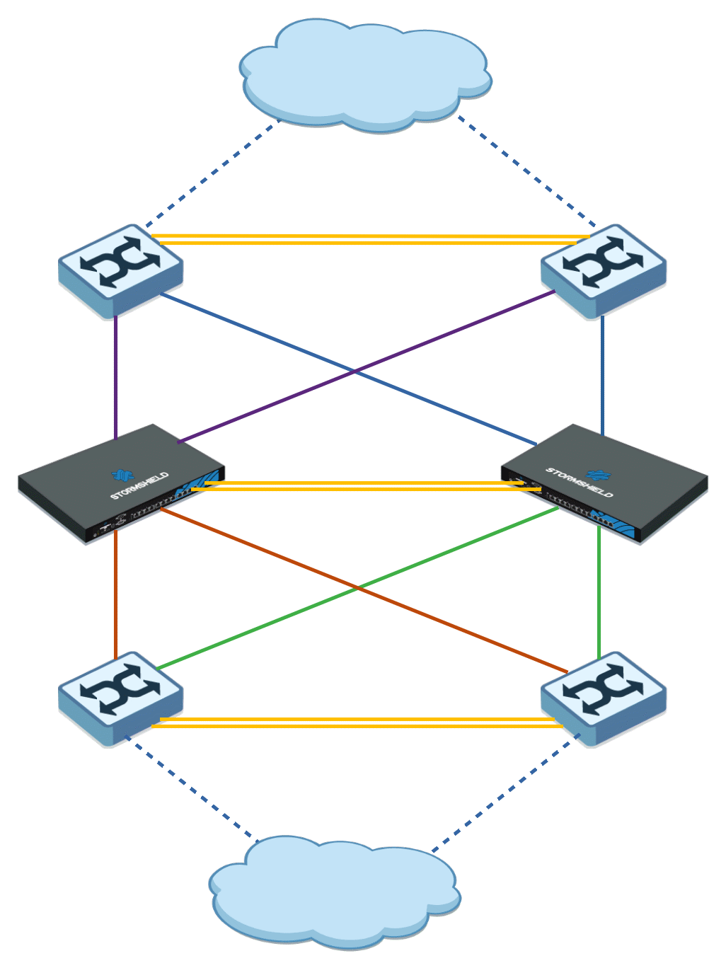 - Consultez également la section Branchement optimal pour liens de Haute-Disponibilité (HA) du Guide de présentation et d’installation des produits disponible sur le site de Documentation Technique Stormshield.