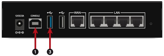 Le port USB (1) permet d’accéder au firewall SNS en mode console : il est ainsi possible de s'y connecter depuis un ordinateur. Cette connexion requiert l’installation d’un pilote sur l'ordinateur. Téléchargez-le depuis l’adresse : http://www.ftdichip.com/Drivers/VCP.htm.